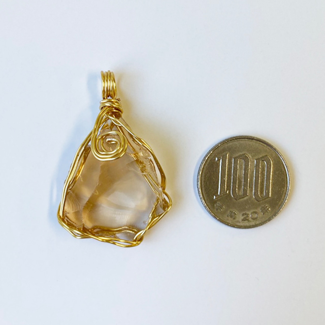【商品名】アンダラクリスタル〈レムリアンイーサリウムゴールド/オレンジ/金〉 のワイヤーペンダントトップ wire0019