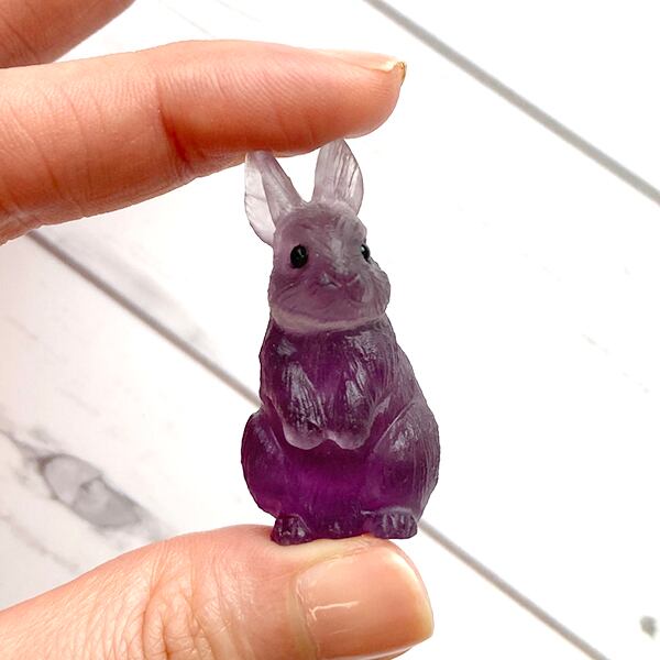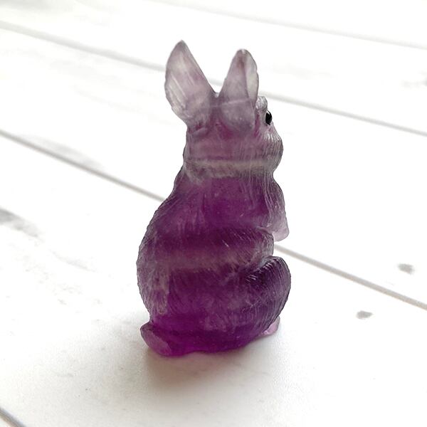知性を高める石と言われるフローライトを可愛らしいうさぎの形に彫った置物です。