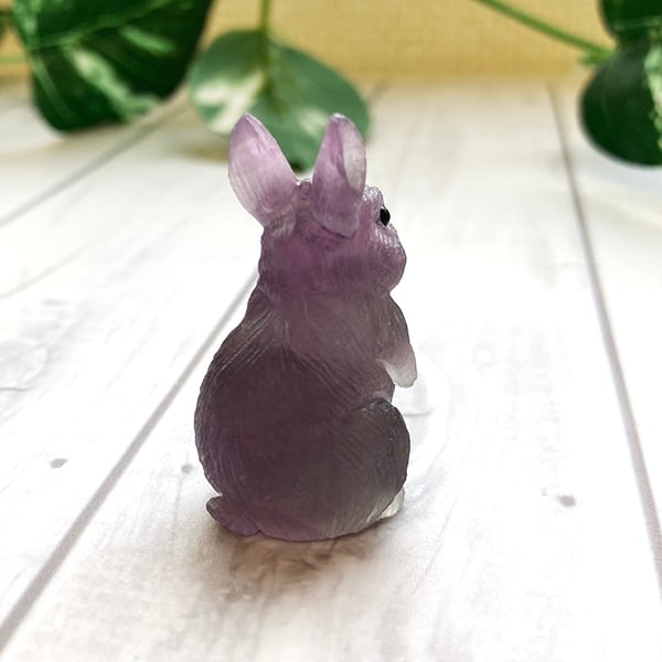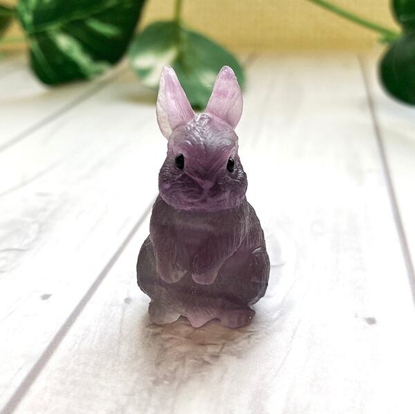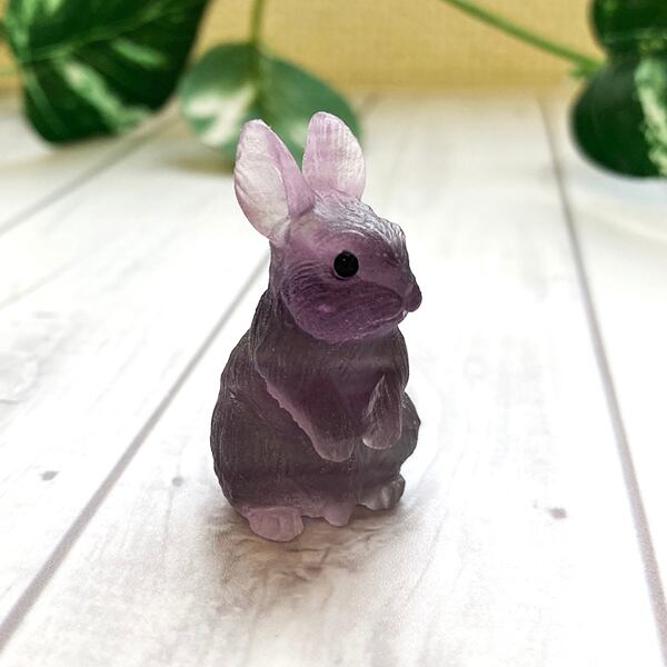 知性を高める石と言われるフローライトを可愛らしいうさぎの形に彫った置物です。