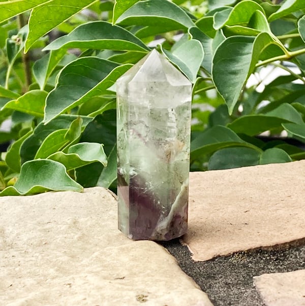 流通数の少ない希少なフローライトの六角柱ポイントです!