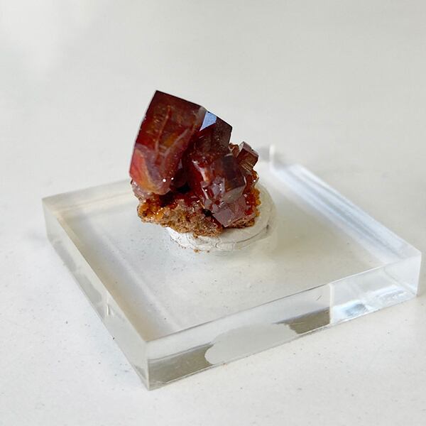 バナジナイトは非常に珍しい鉱石として知られています。モロッコの鉱山から採掘された褐鉛鉱に含まれるバナジウムやモリブデンが、光や空気、水分を取り込んで長い年月をかけて結晶化して形成されたもので、美しい形が特徴です。