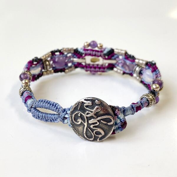 編まれている糸の素材はナイロンなのでとても丈夫で、汚れても石鹸水で洗い落とすことが出来ます。天然石を使用しているため、多少のキズや凹みがある場合もございます。