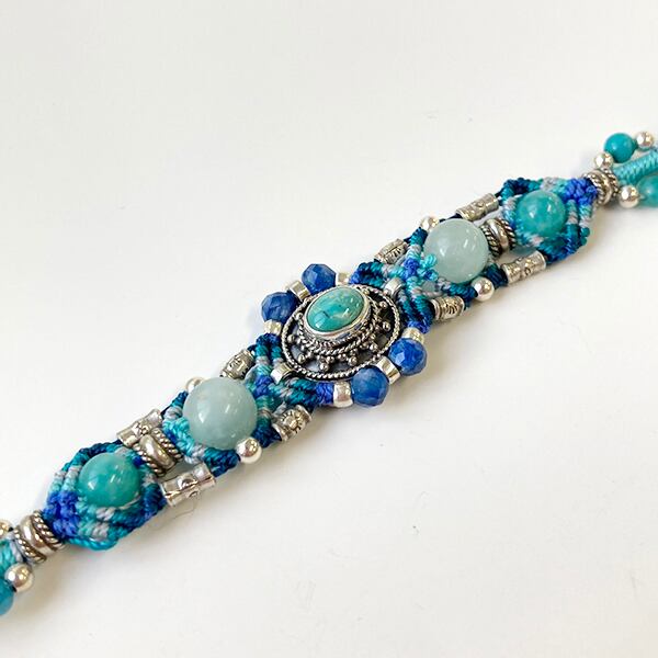 編まれている糸の素材はナイロンなのでとても丈夫で、汚れても石鹸水で洗い落とすことが出来ます。天然石を使用しているため、多少のキズや凹みがある場合もございます。