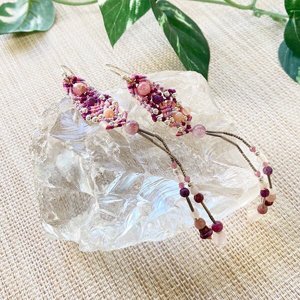 「美・愛・優しさ」を象徴するローズクォーツを使用した華やかなピアスです。