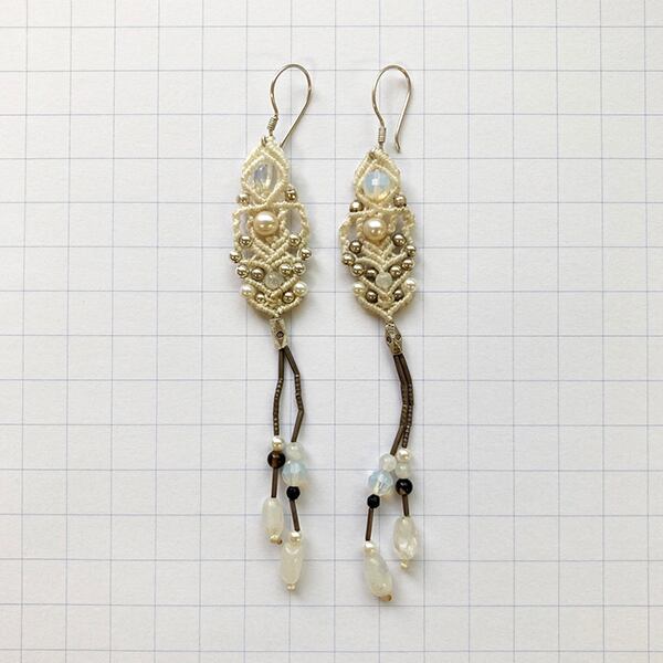 女性の魅力を高めると言われるムーンストーンや浄化のパワーの強いクリスタルを使いホワイトトーンでまとめた清涼感のあるピアスです。